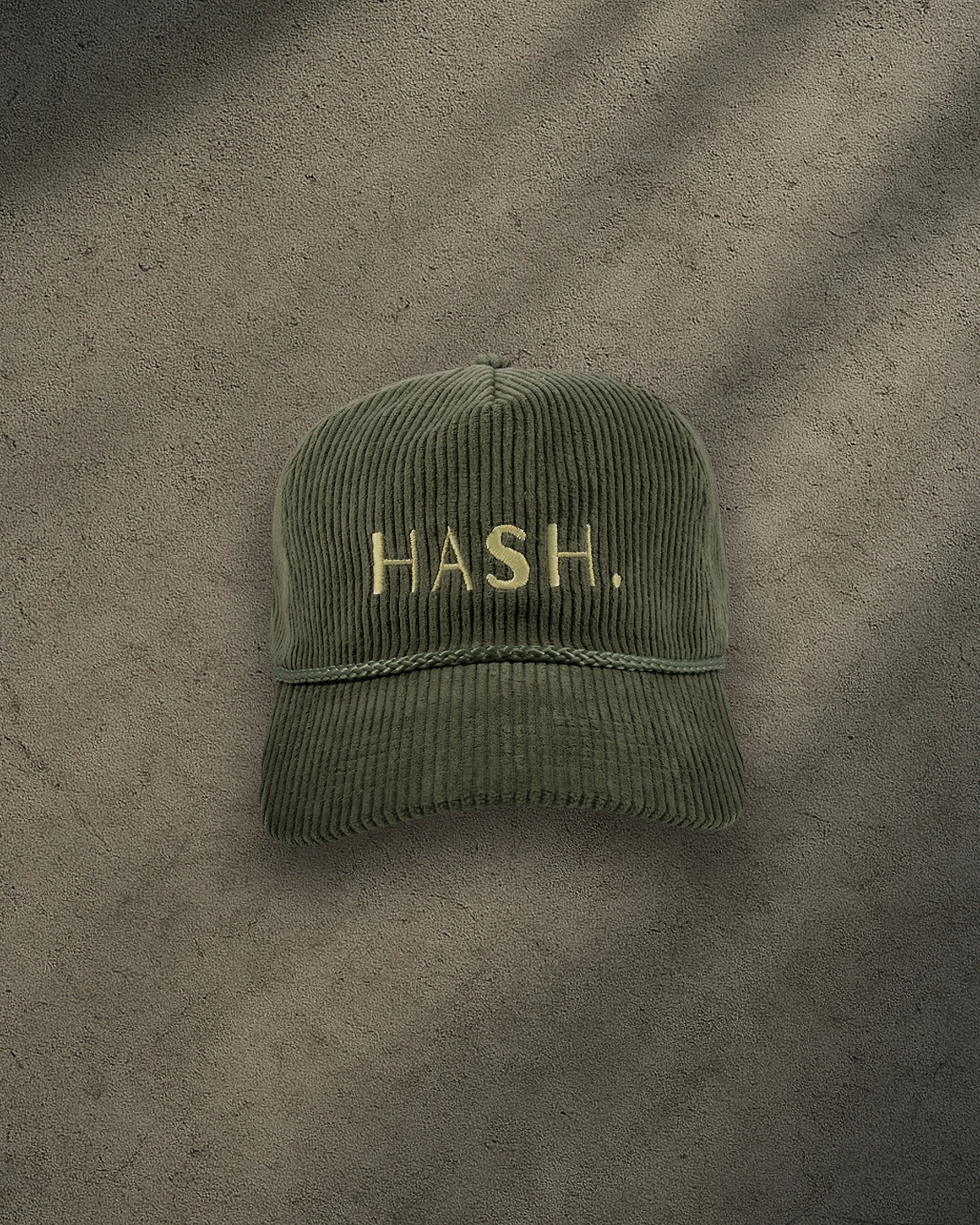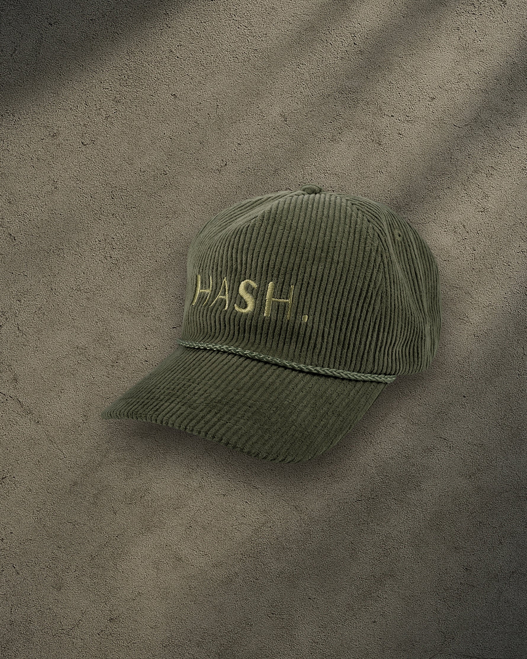 This olive green corduroy snapback is embroidered with “HASH” in bold gold, making it a must-have for heads who know what time it is. With its retro silhouette and rich texture, it hits that sweet spot between low-key luxe and underground edge. Whether you're posted up at a sesh or on a coffee run, this cap adds just the right amount of flavor to your fit.