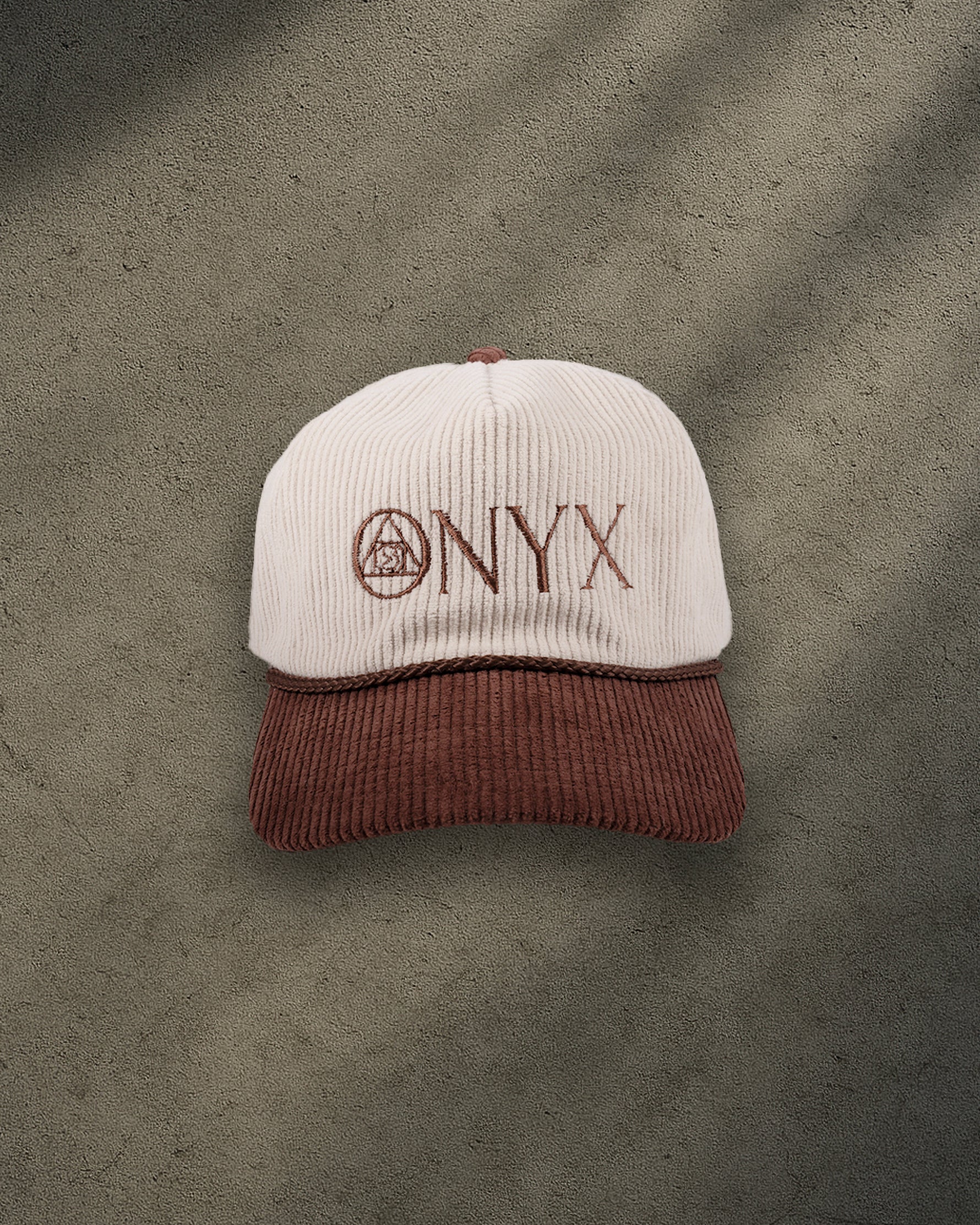 Earthy, intentional, and unmistakably ONYX. This snapback blends a soft beige crown with a warm brown brim, finished off with brown embroidery for a grounded, minimalist look. The stitched ONYX name and emblem keep things sharp, while the corduroy texture brings vintage depth to a modern staple.