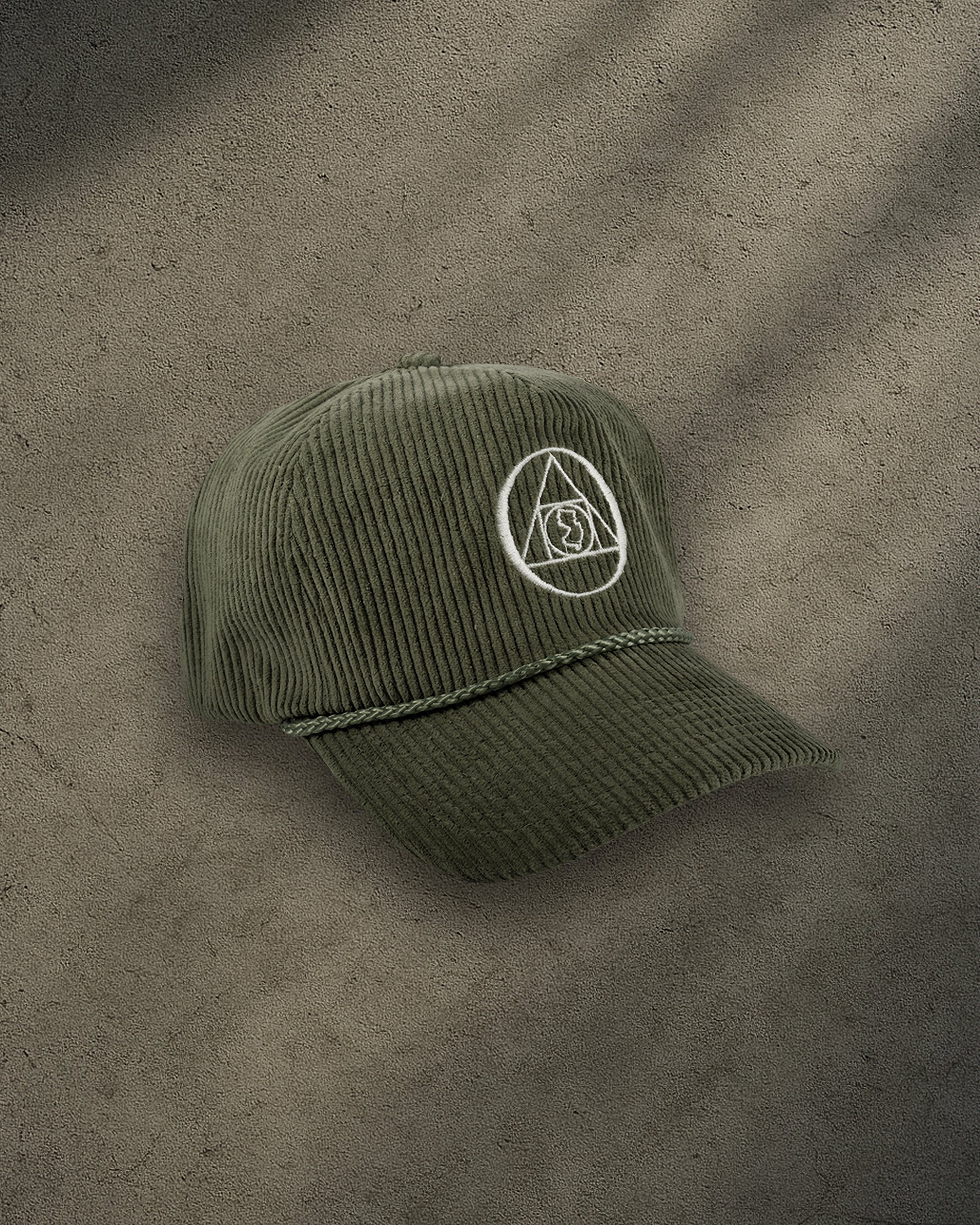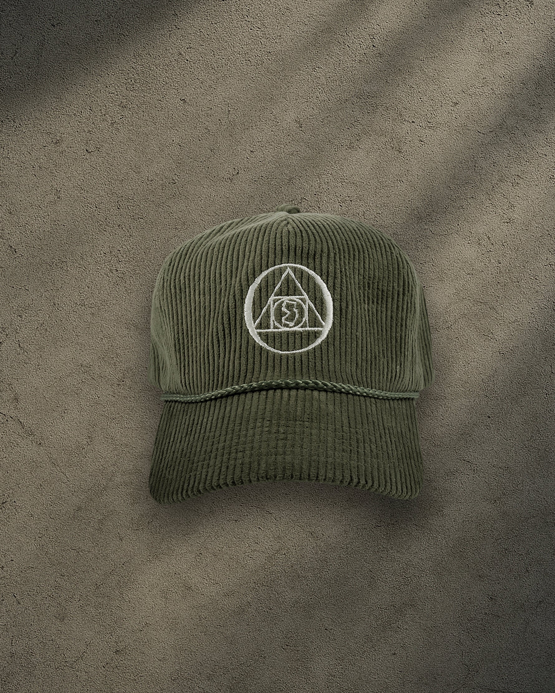 ONYX Olive Corduroy Snapback Hat with White "O" Embroidery